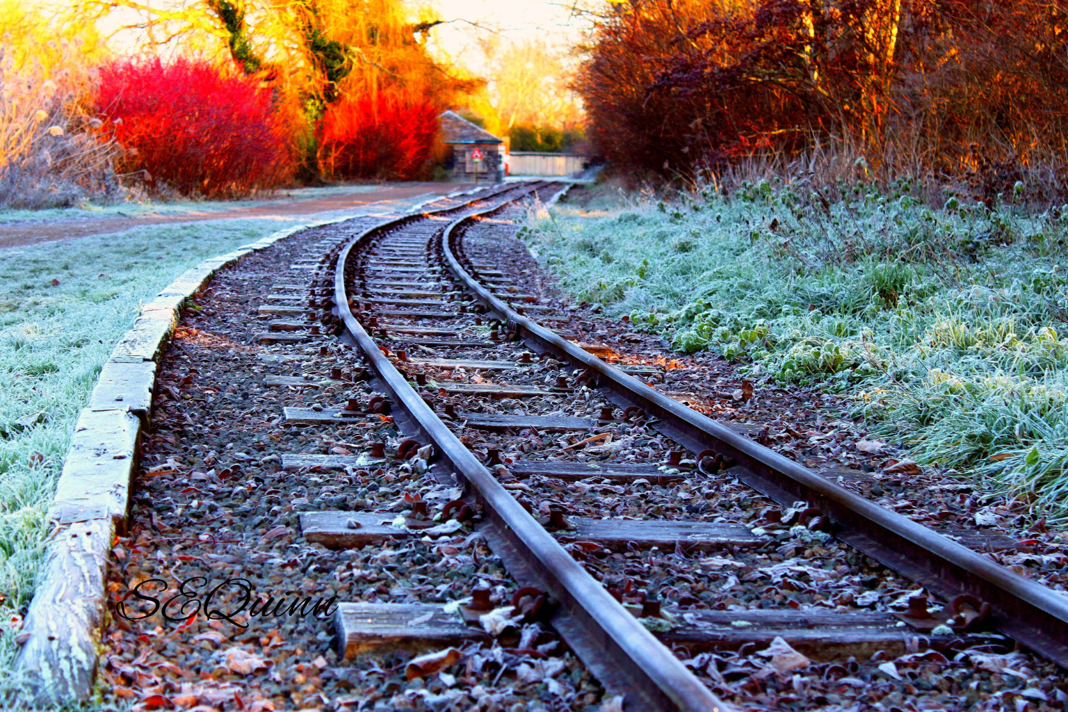 Captured on a crisp Wicksteed morning, Autumn Iron blends frosted rails with vibrant autumn foliage — a bold, atmospheric addition to your home.