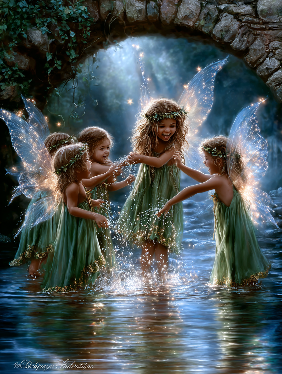 βAt Geddington Ford, beneath the ancient stone arch, five fairlings gather in the shimmering water β their laughter and light turning a familiar place into a realm of quiet enchantment.β